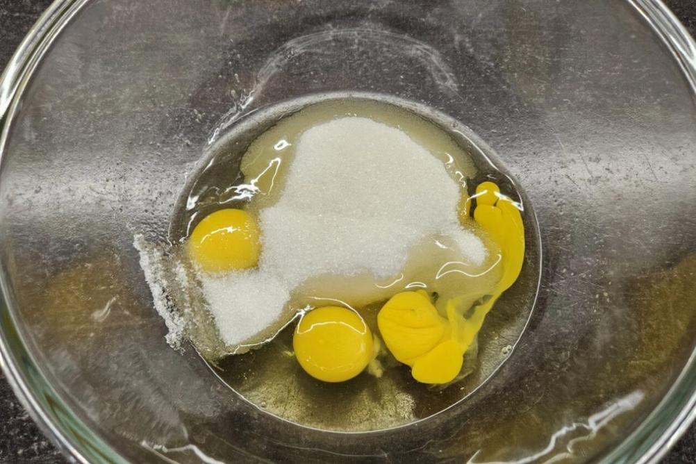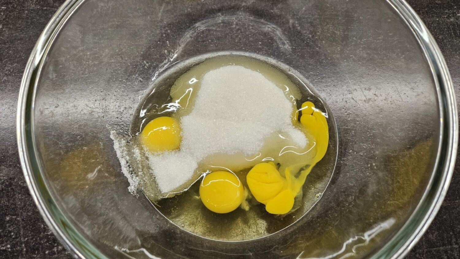 In a large bowl, beat the eggs with sugar using a mixer until smooth. Beat for about 5-8 minutes, or until the mixture turns pale and increases in volume.