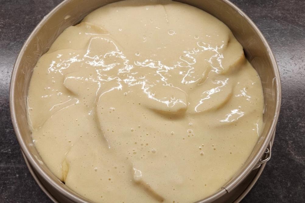 Spread the batter evenly over the apples.