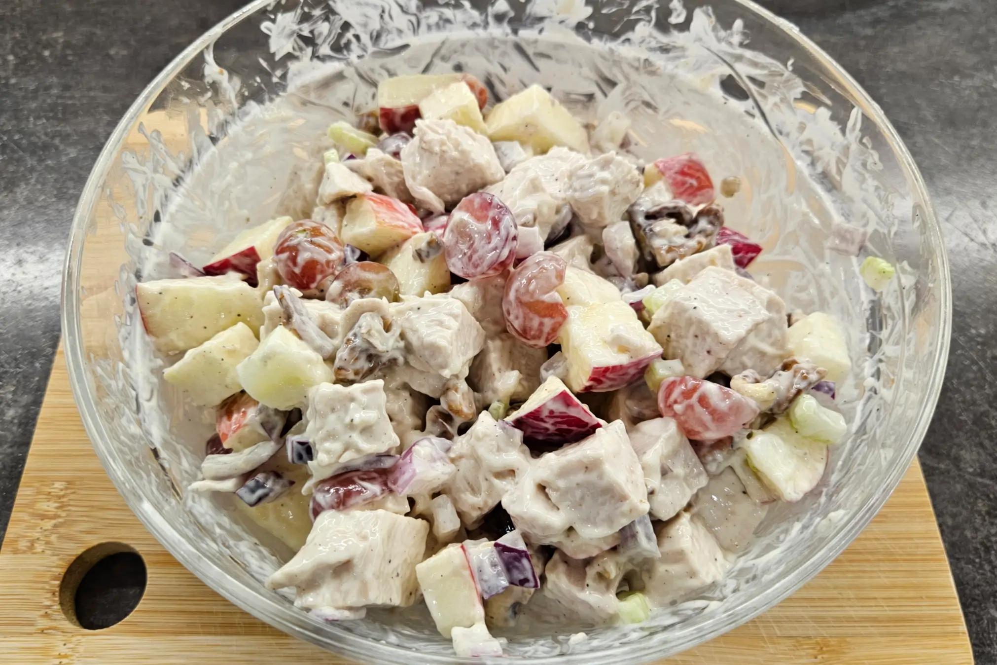 This chicken salad with apples, grapes, and walnuts is a modern take on the classic Waldorf. It pairs fresh fruit with tender chicken and a lightly creamy mayonnaise dressing, so every bite is crisp, delicate, and satisfying.