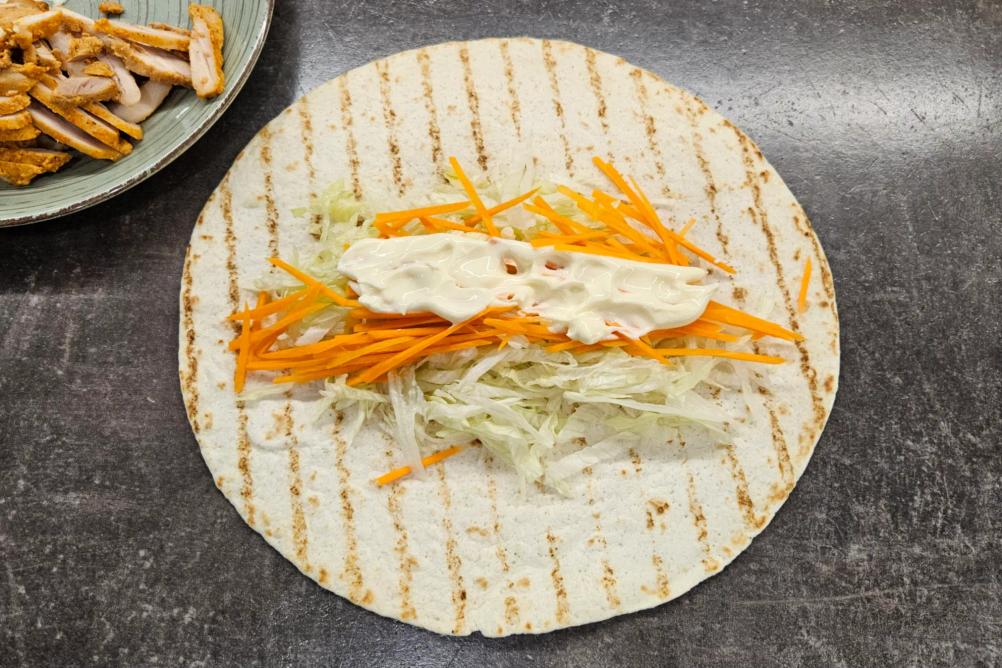 Tender baked chicken in a creamy yogurt marinade combines a delicate texture, a touch of tanginess, and the warmth of aromatic spices. The blend of Greek yogurt, lemon juice, and spices keeps the chicken juicy inside and beautifully golden on the outside. It’s delicious on its own or makes a perfect base for wraps, salads, or light meals. Paired with fresh vegetables, melted cheese, and spicy sriracha, it turns into a balanced, hearty, and flavorful roll that’s quick to prepare.