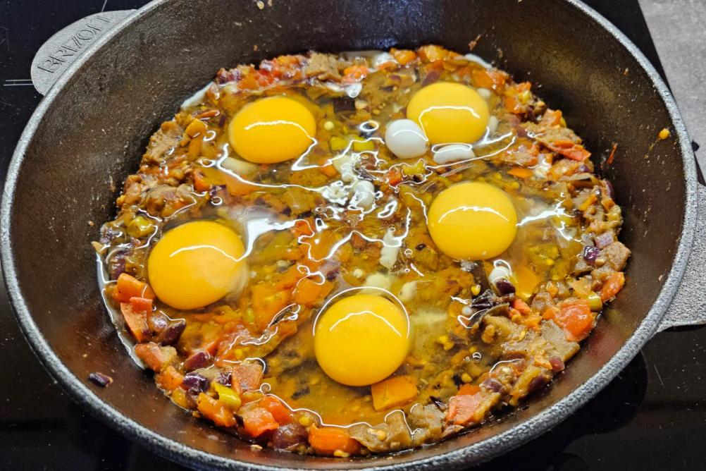 A dish that combines tender vegetables, aromatic spices, and eggs cooked directly in the sauce. It’s one of those recipes that works at any time of day. Easy to make with simple ingredients, and the thick eggplant-and-tomato sauce makes it hearty, fragrant, and bright in flavor.
