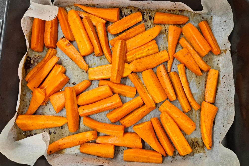 Peel the carrots and cut them into pieces about 5 cm long.