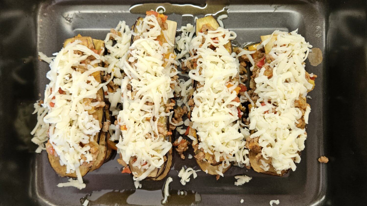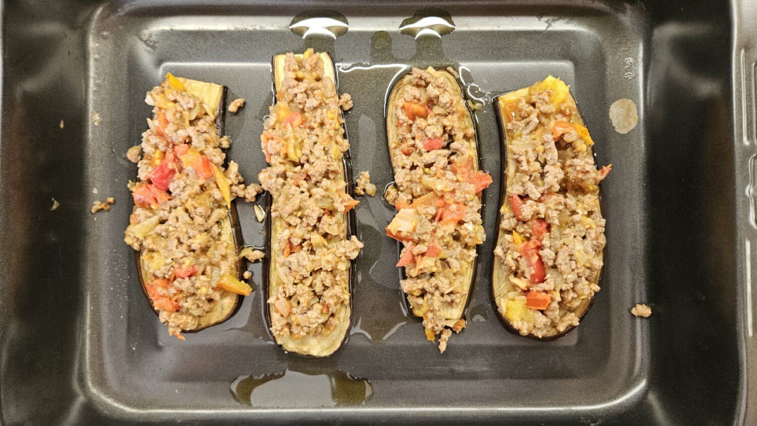 Tasty baked eggplants layered with flavorful meat stew – the perfect dish for a cozy dinner.