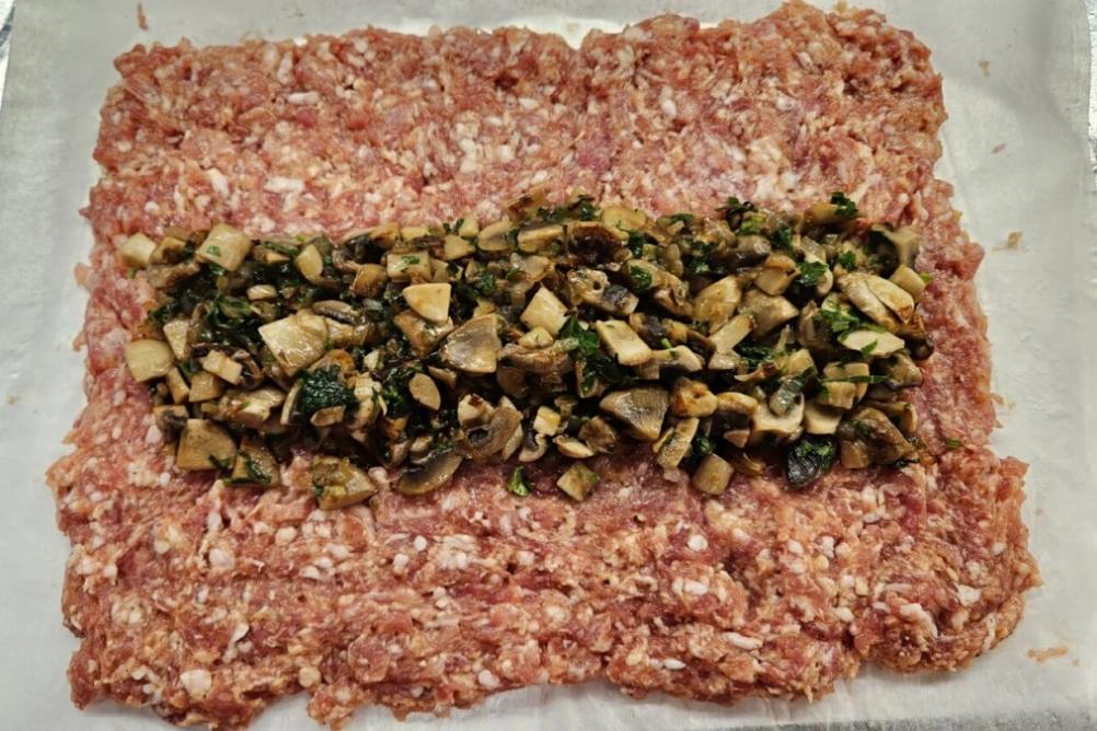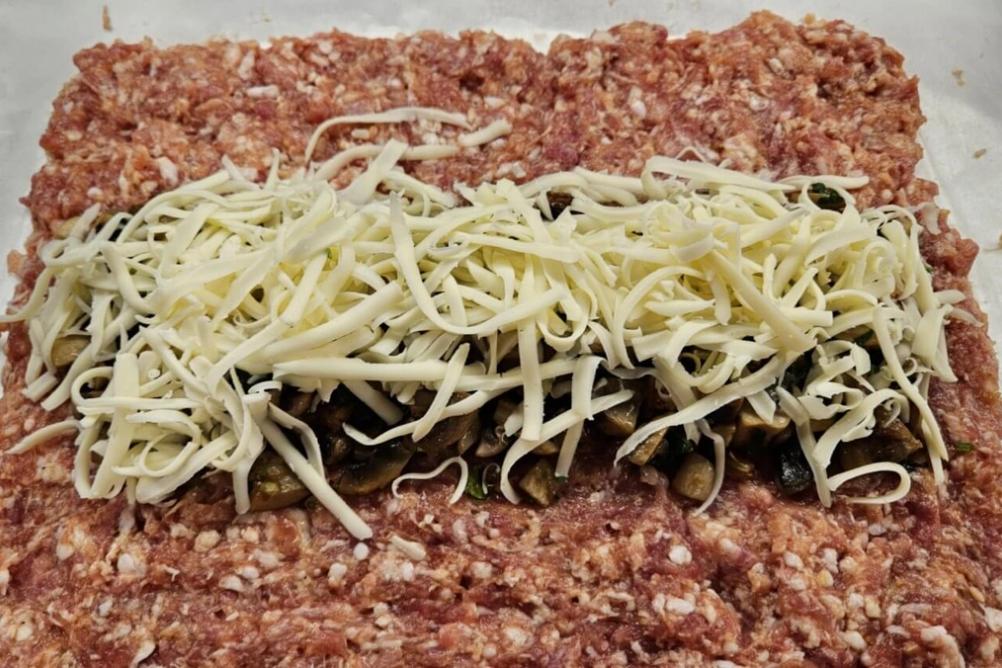 A meat roll stuffed with flavorful mushrooms, fresh herbs, and mozzarella, baked to a golden crust. A perfect dish for a family dinner or festive table that will impress with its taste and appetizing look!