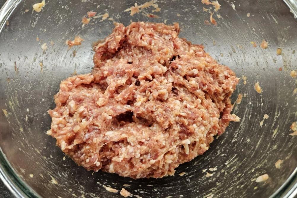 Grind the meat into minced meat or use pre-ground meat. I prefer pork shoulder, but you can choose any meat to your liking.