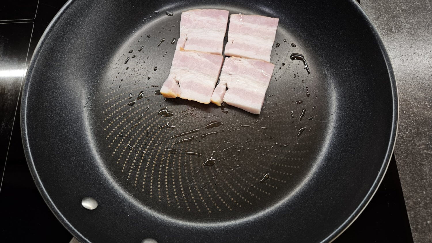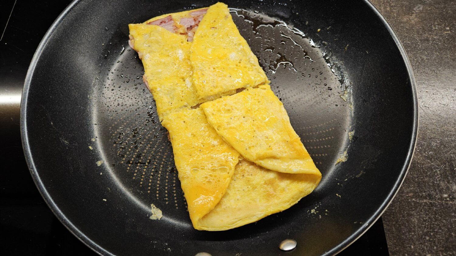 Heat a skillet over low heat, add a little oil, and fry the ham for 3 minutes on one side.